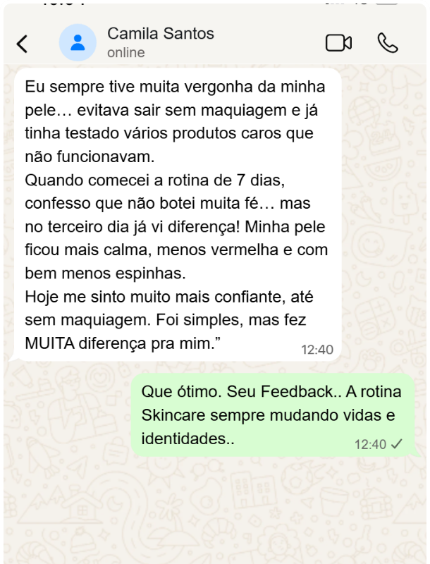 Veja casos de pessoas que conseguiram finalmente ter uma rotina simples e eficaz usando o E-book Rotina 7 Dias de Skincare.